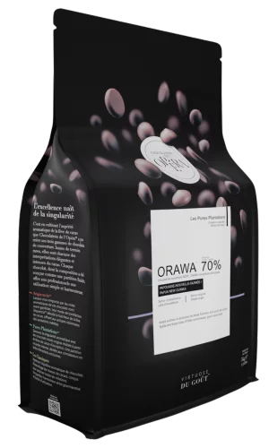Made from cocoa beans grown in limited quantities, this dark chocolate is available in a LIMITED EDITION. Its subtle combination of strength and aromatic freshness perfectly matches our signature flavour profile. Orawa 70% is a chocolate with a rare and vibrant personality.