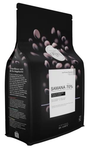 Fruit d'un terroir d'excellence, Samana 70% est à la fois rond et fruité. Sa palette aromatique allie de puissantes notes épicées à celles de cerises mures et figues séchées. Grande possibilité d'associations aromatiques.